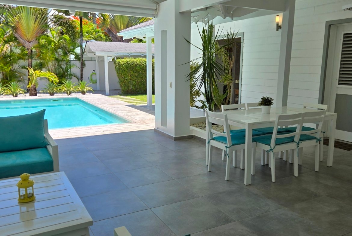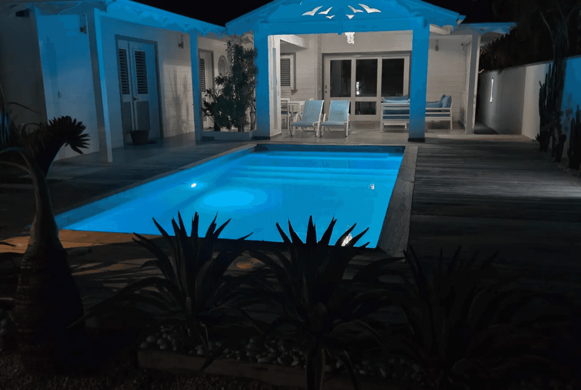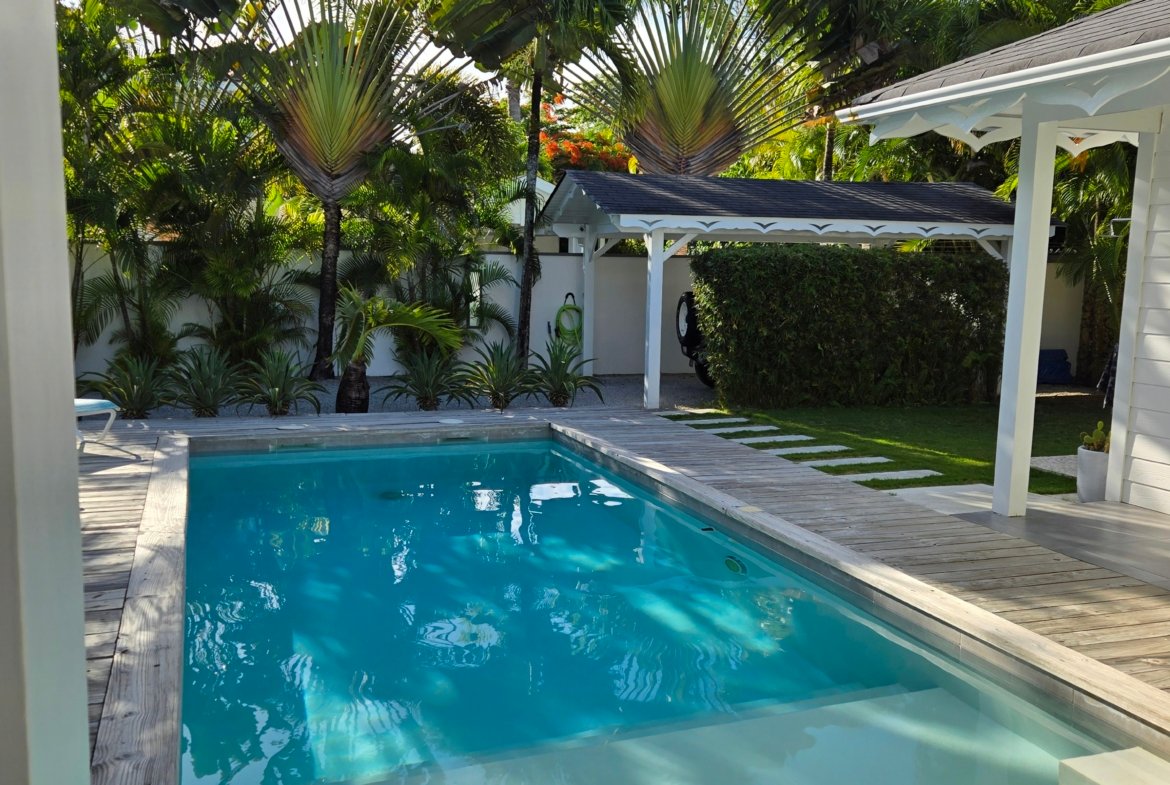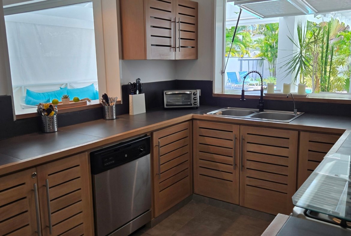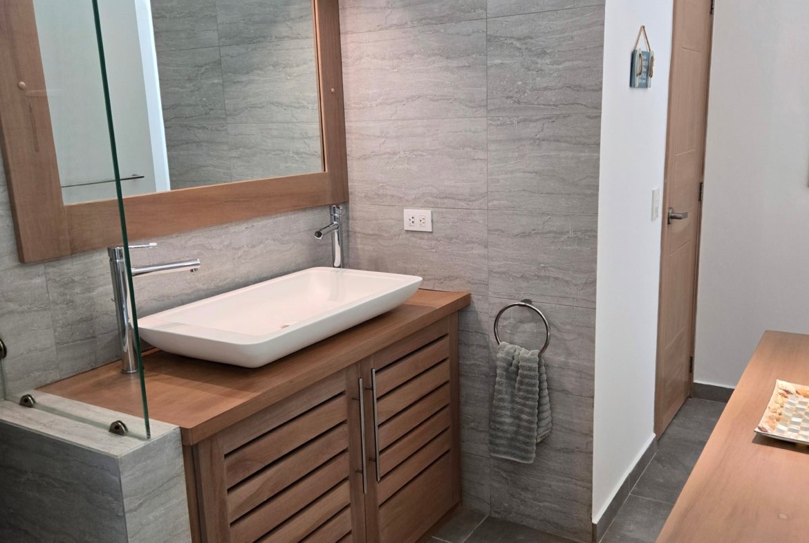Villa privada de una sola planta con piscina privada, ubicada en la exclusiva comunidad cerrada Villas Palma Real. Esta propiedad se distingue por sus altos techos tipo catedral y su excelente distribución interior-exterior, que ofrece un ambiente de vida cómodo, luminoso y armonioso, a solo unos minutos de la playa Las Ballenas.