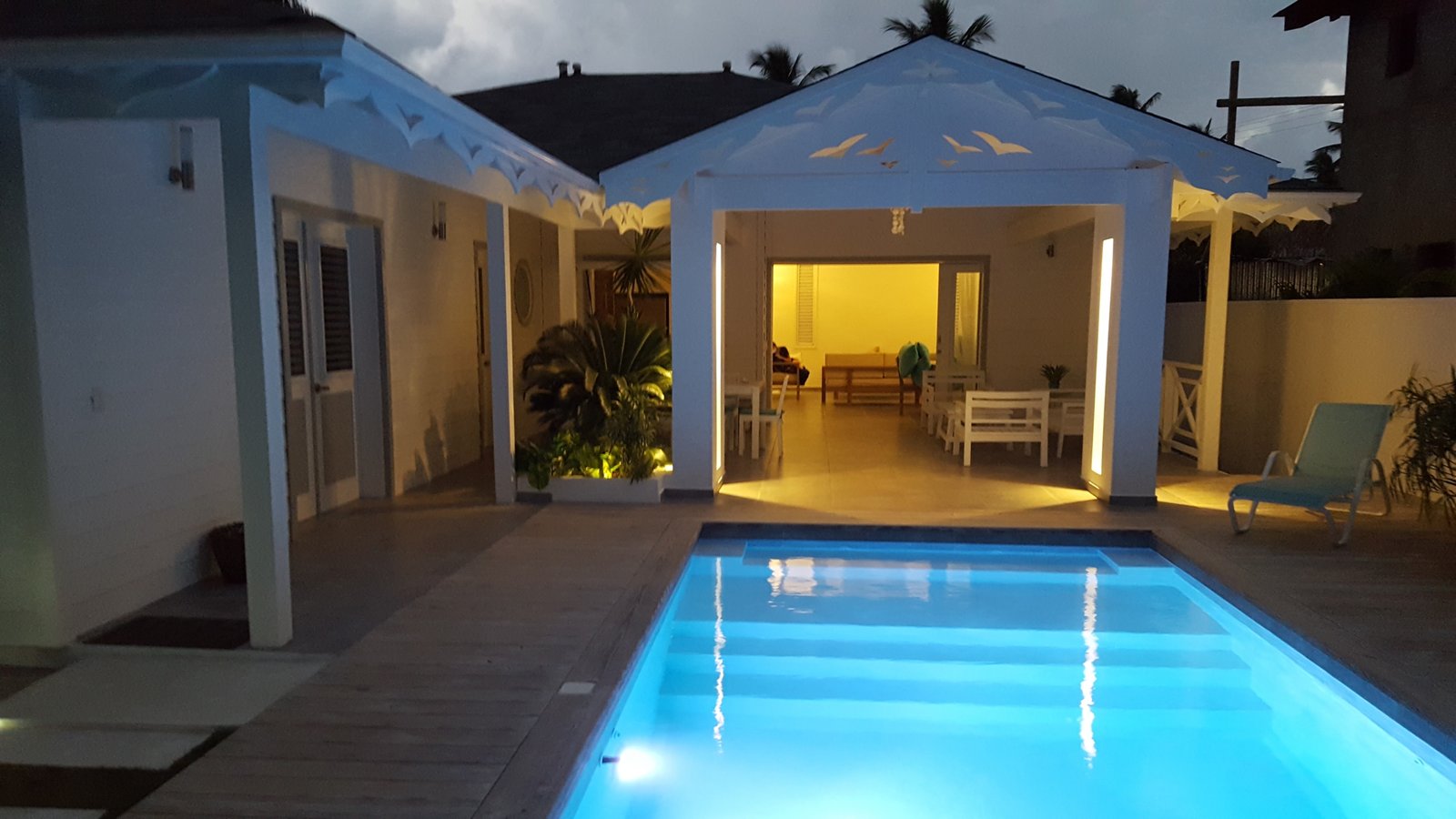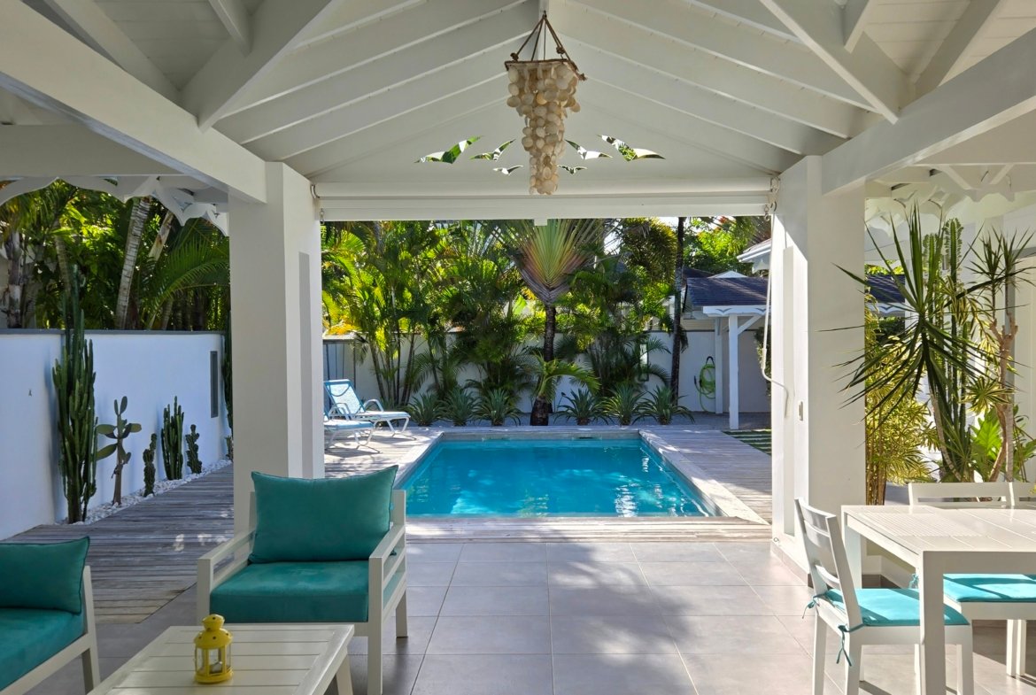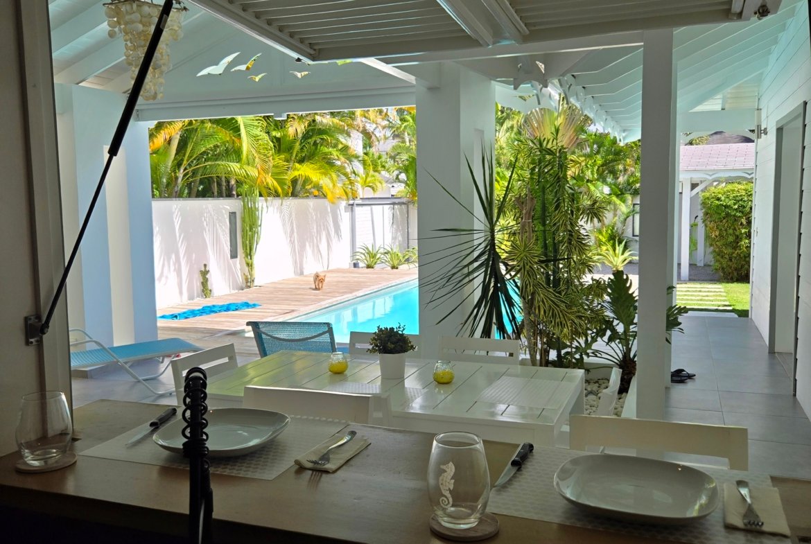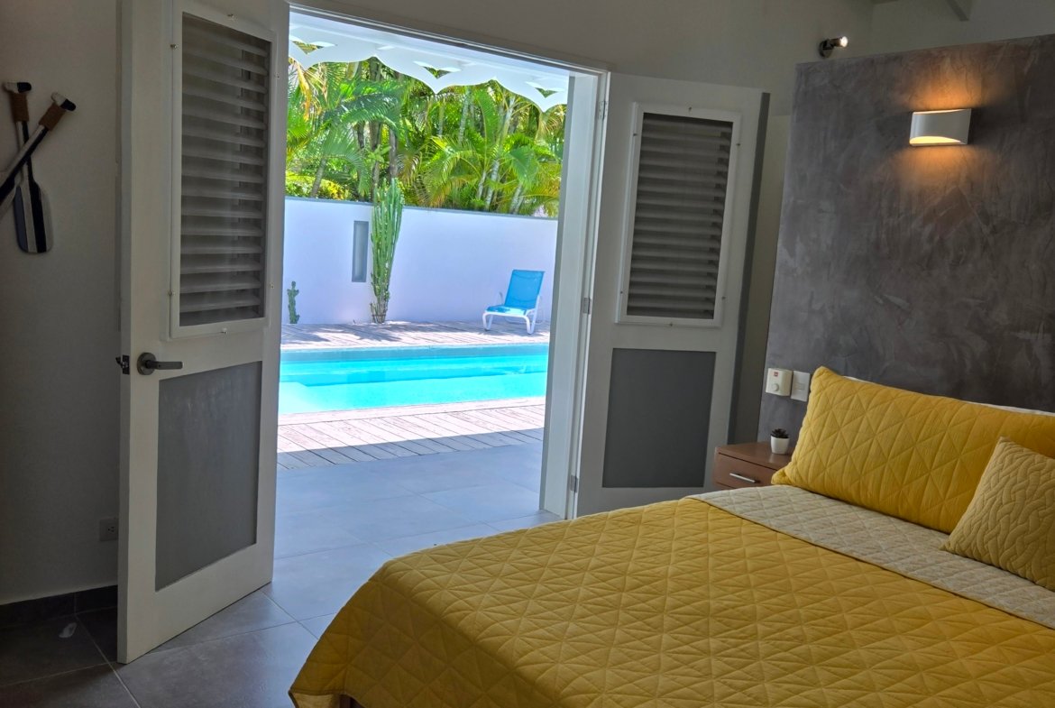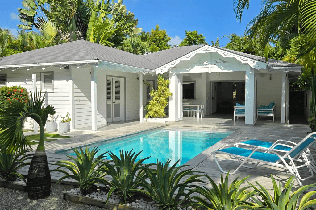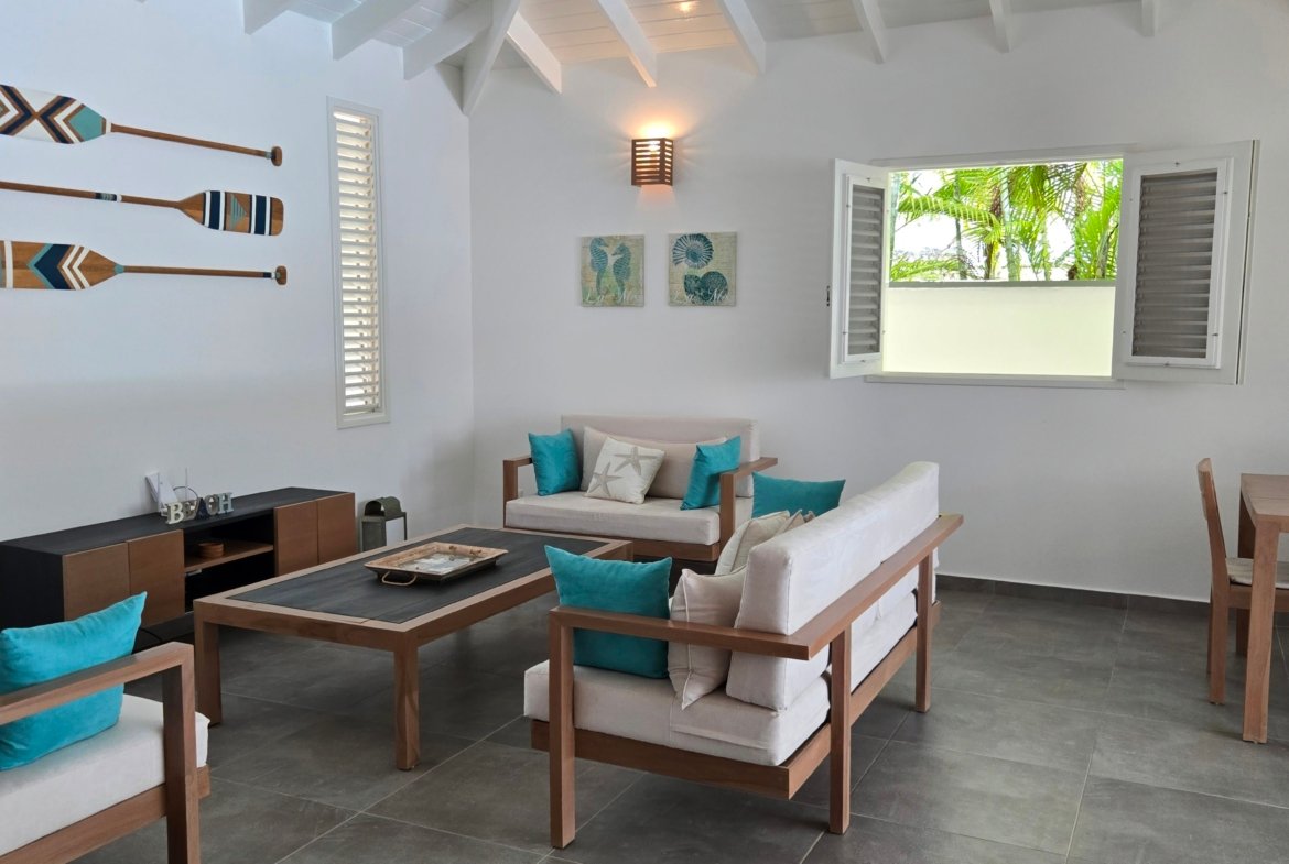 Villa privada de una sola planta con piscina privada, ubicada en la exclusiva comunidad cerrada Villas Palma Real. Esta propiedad se distingue por sus altos techos tipo catedral y su excelente distribución interior-exterior, que ofrece un ambiente de vida cómodo, luminoso y armonioso, a solo unos minutos de la playa Las Ballenas.