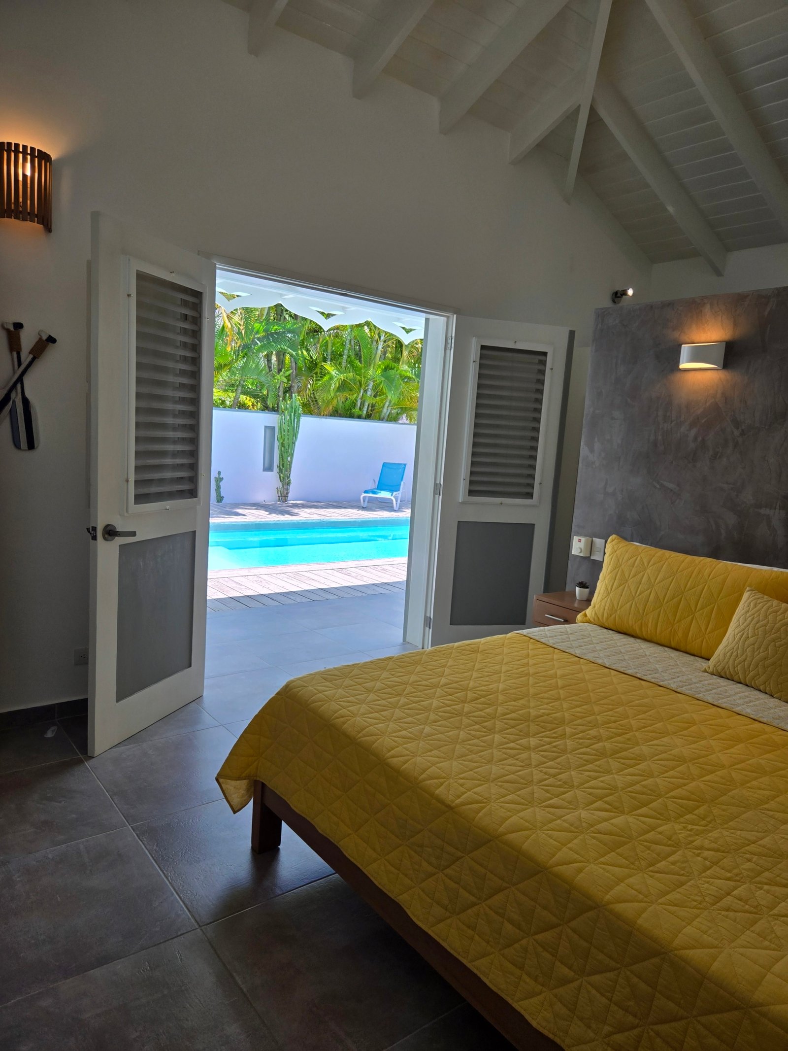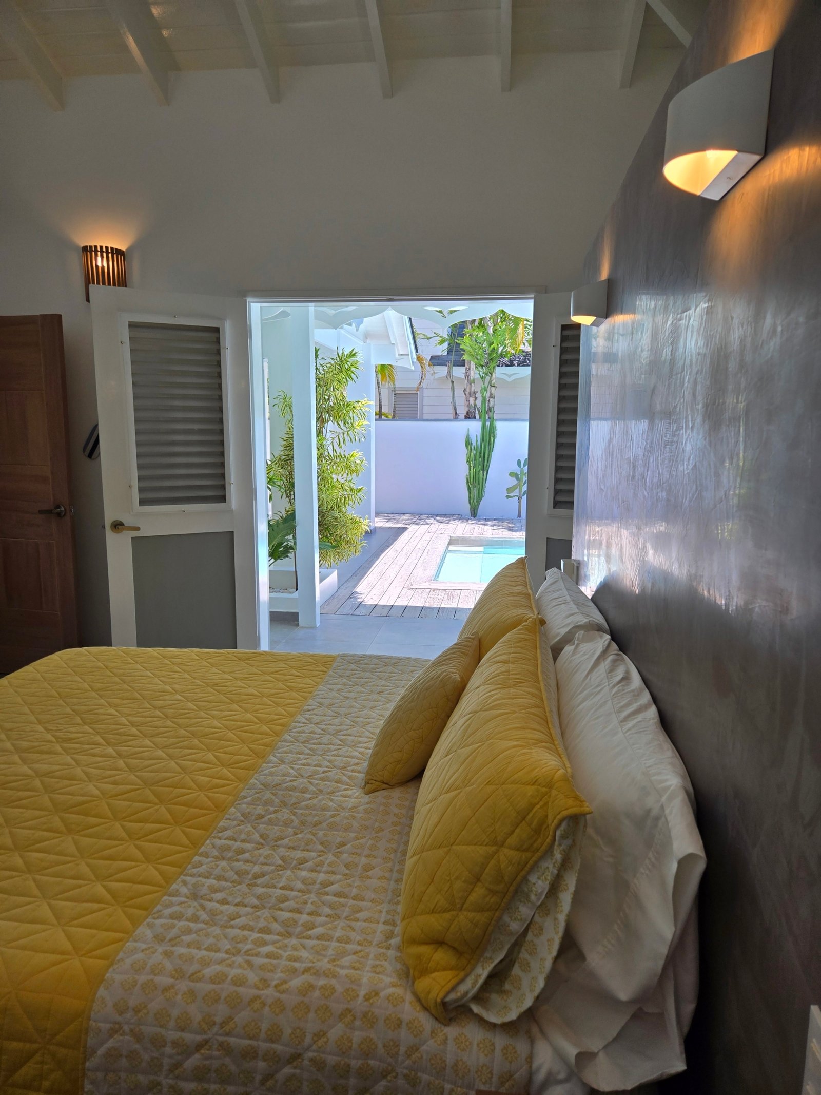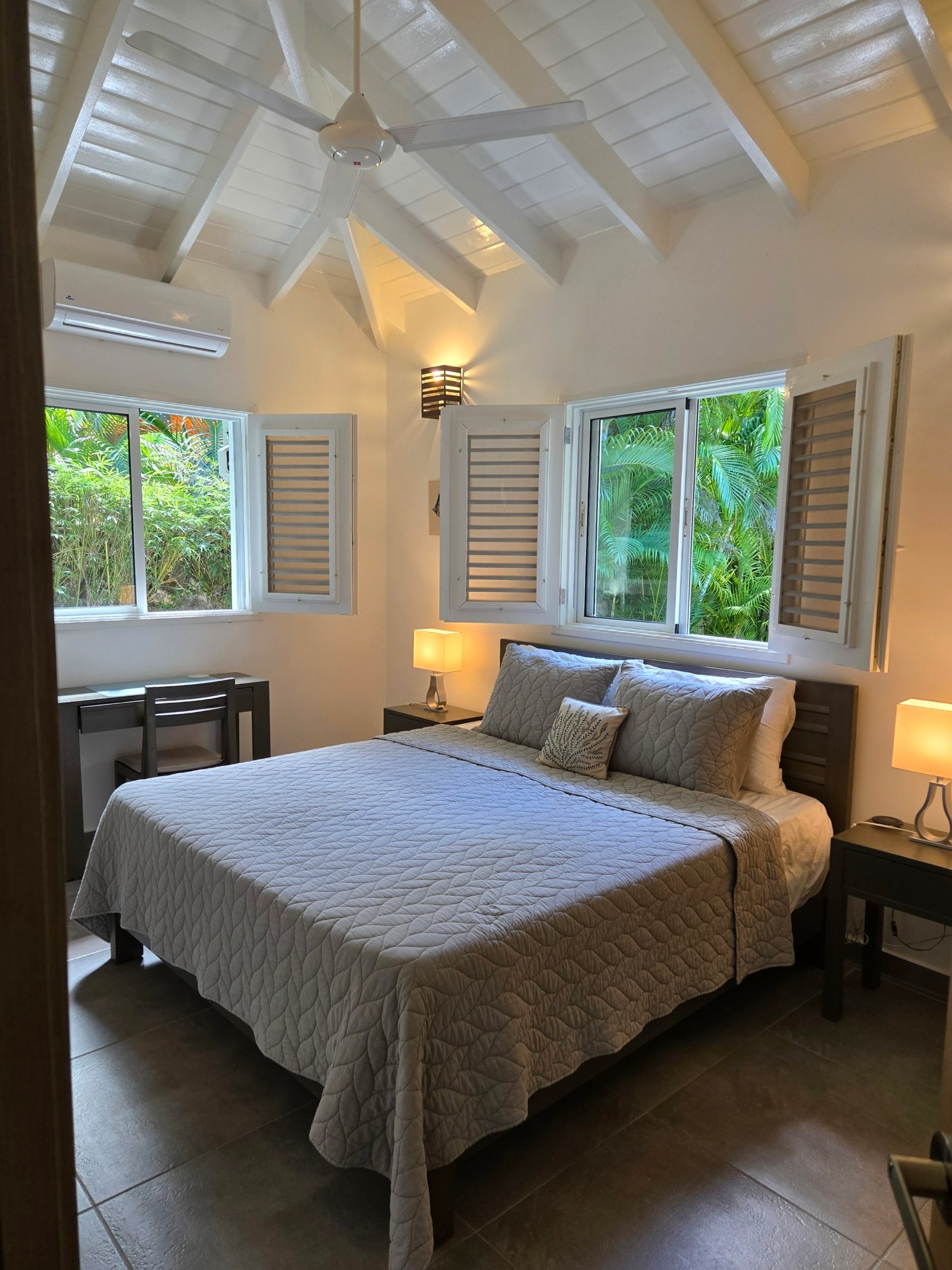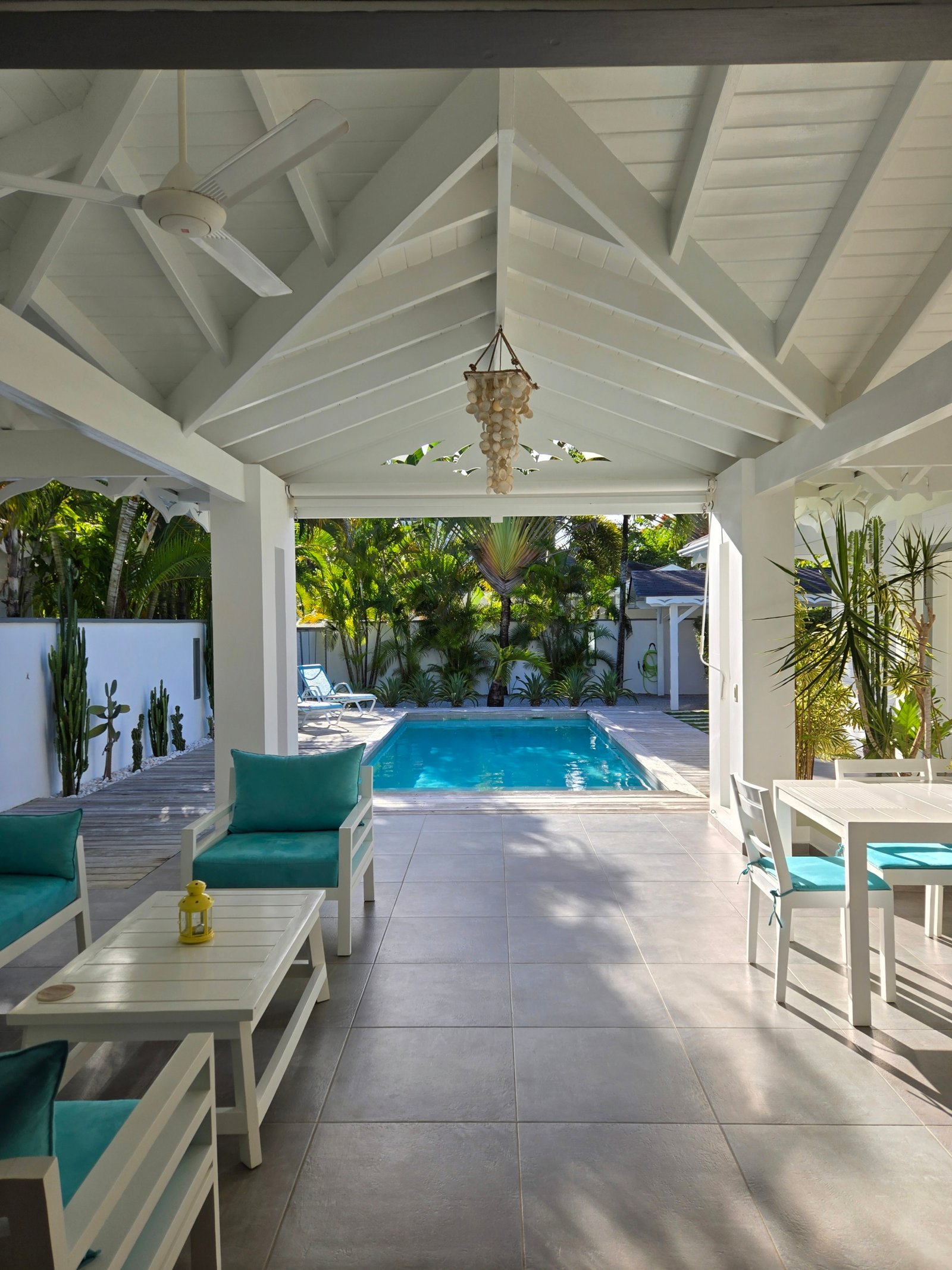 Villa privada de una sola planta con piscina privada, ubicada en la exclusiva comunidad cerrada Villas Palma Real. Esta propiedad se distingue por sus altos techos tipo catedral y su excelente distribución interior-exterior, que ofrece un ambiente de vida cómodo, luminoso y armonioso, a solo unos minutos de la playa Las Ballenas.
