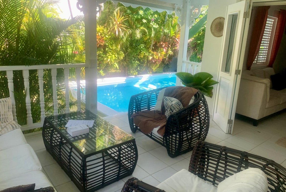 Ubicada a pocos minutos de la playa de Popy, dentro de una encantadora residencia de 26 casas, esta hermosa villa de estilo colonial ofrece un entorno tranquilo y tropical.