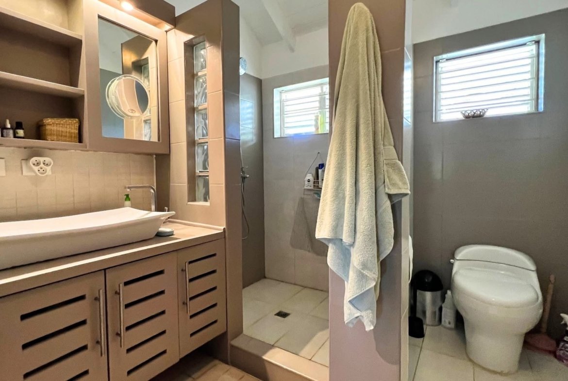 Con una superficie construida de 140 m², la villa se encuentra sobre un terreno ajardinado de 280 m² con un hermoso jardín tropical y piscina privada.