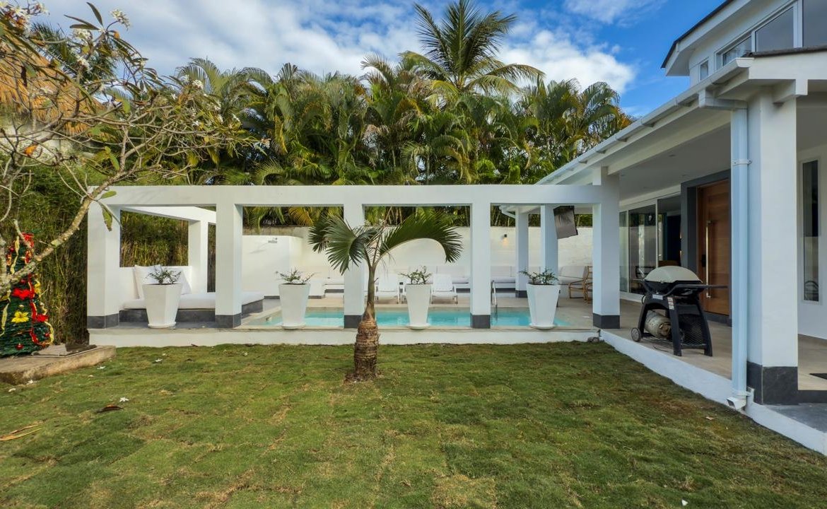 La villa cuenta con 200 m² construidos sobre un terreno con 400 m² de áreas verdes. Se vende totalmente equipada y amueblada con mobiliario nuevo (camas, armarios, sofás, etc.).
